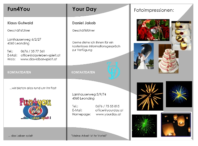 Visitenkarte, Kooperationsflyer, Poster - "Your Day" und "Fun4You"